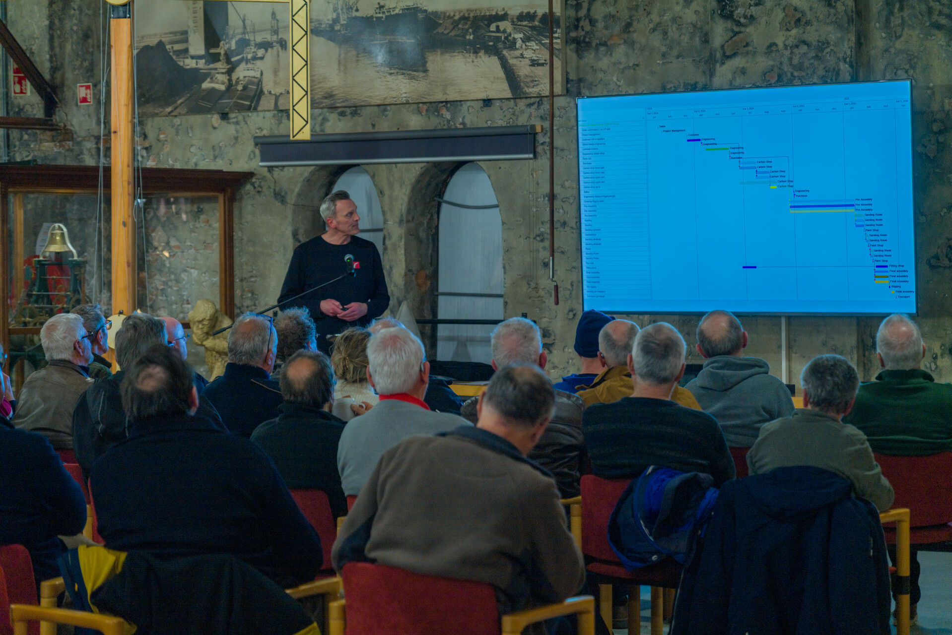 Voor het aanwezige publiek was het bijzonder om te zien hoe dit bedrijf in Breskens een belangrijke rol speelt in de wereld van carbon masten: ultralicht, oersterk en onmisbaar op de snelste jachten ter wereld. Van ontwerp en bouw tot wereldwijde levering, inclusief oplossingen voor de praktische uitdagingen in productie en transport, alle aspecten kwamen aan bod in dit interessante vertelcafé.